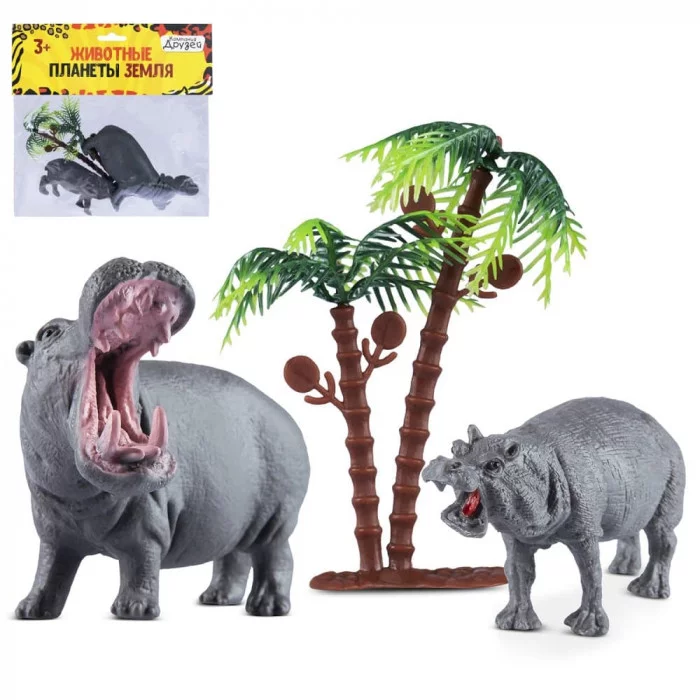 ТМ "КОМПАНИЯ ДРУЗЕЙ", серия "Животные планеты Земля", набор "Мама и малыш" Бегемоты 2 шт (3 предмета) 8,5-10 см в/п 21х20 см JB0211760