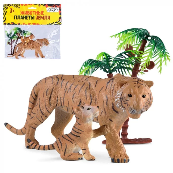 ТМ "КОМПАНИЯ ДРУЗЕЙ", серия "Животные планеты Земля", набор "Мама и малыш" Тигры 2 шт (3 предмета) 6, 5-14 см в/п 21х21 см JB0211766