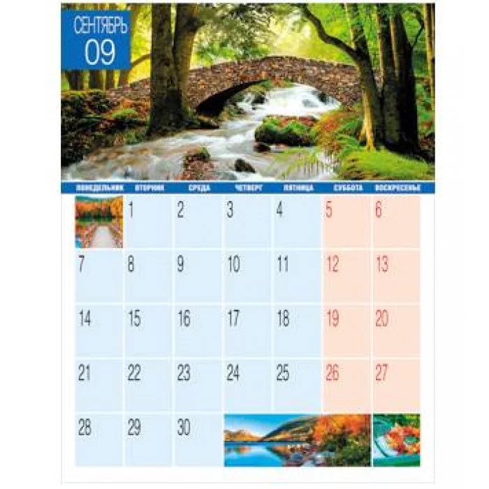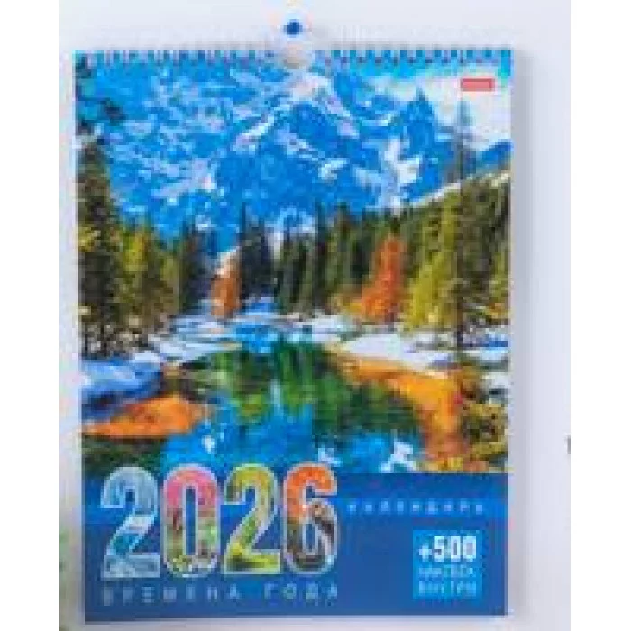 Календарь настенный перекидной 22х30 МИНИ на 2026г бум. Мелованная на гребне с ригелем с НАКЛЕЙКАМИ-Времена года- в инд.упак.с европодвесом
