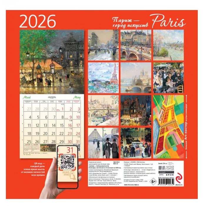 Практичный иэстетичный, этот настенный календарь на 2026 год каждый месяц будет радовать вас. Прекрасные картины органично дополнят любой интерьер ипомогут планировать время. Вэтом календаре представлены шедевры разных творцов, вдохновленных Парижем.