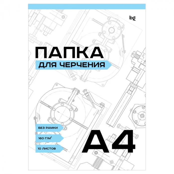 Папка для черчения BG, А4, 10л., без рамки, 160г/м2 366403