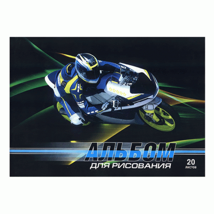 Альбом для рисования, 20 листов, скрепка, 1044 "Мотоотрыв" /30/