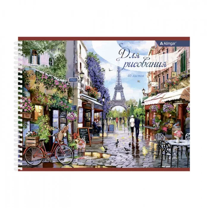 Альбом для рисования 245*195 мм, 40л, Alingar, гребень, мел. картон(стандарт) 210г/м2, офсет 100 г/м2, "Париж" AL9458