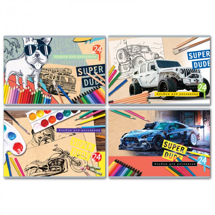 Альбом для рисования 24л., А4, на скрепке BG "Super dude", эконом 326469