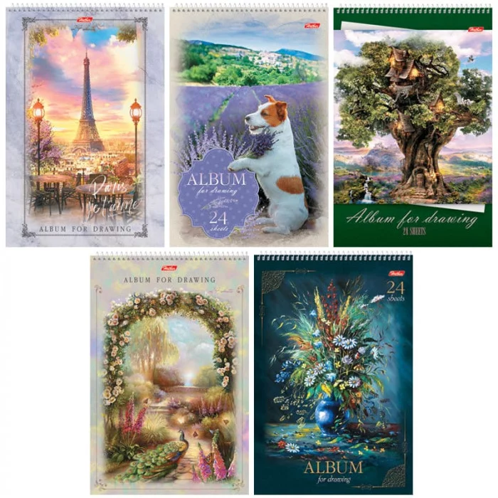 Альбом для рисования 24л А4 на спирали Hatber Ассорти тиснение перфорация отрыв Хатбер 267594