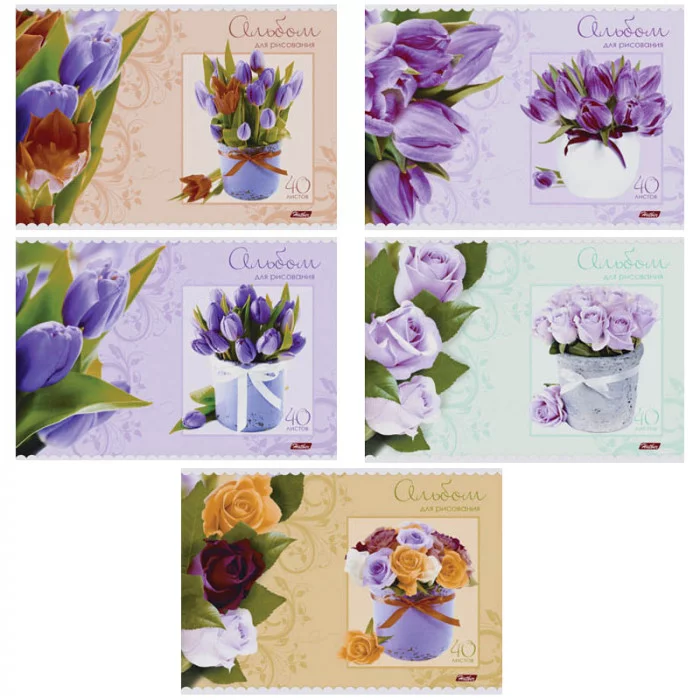 Альбом для рисования 40л., 1 шт, А4, на скрепке Hatber "Нежные букеты", тиснение Хатбер 213298