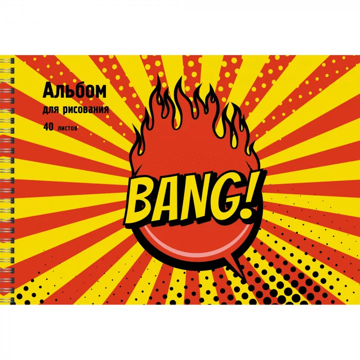 Bang! Альбомы для рисования 40л. Гребень. Обл.: мел. картон, глянцевая ламинация. Бум. оф.110г/м2. Уп./гофр.