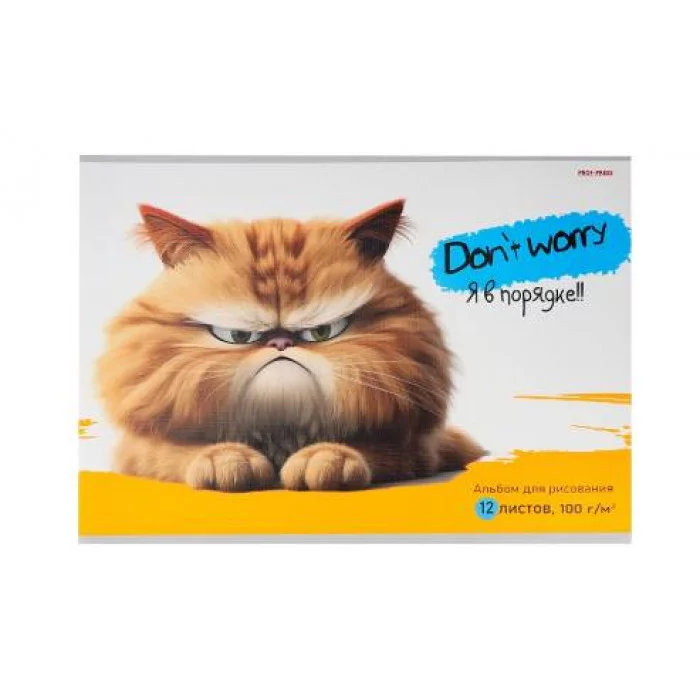 Альбом для рисования А4 12л. СЕРДИТЫЙ КОТ (12-0239) скрепка, 1 диз. в коробке, 6+0 лен 12-0239