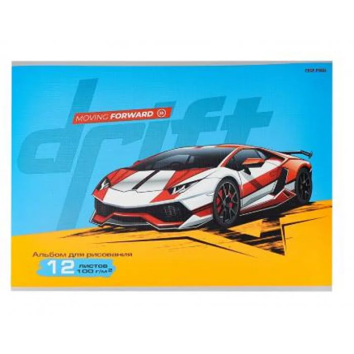 Альбом для рисования А4 12л. СТРЕМИТЕЛЬНЫЙ ДРИФТ (12-0235) скрепка, 1 диз., 6+0 лен 12-023