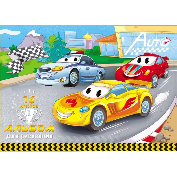 Альбом для рисования А4 16л Веселые гонки скрепка 16-6107