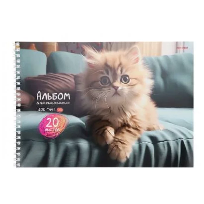 Альбом для рисования А4 20л. ИНТЕРЬЕР С КОТЯТАМИ (20-0999) на гребне, мелов. обл.офсет 20-0999