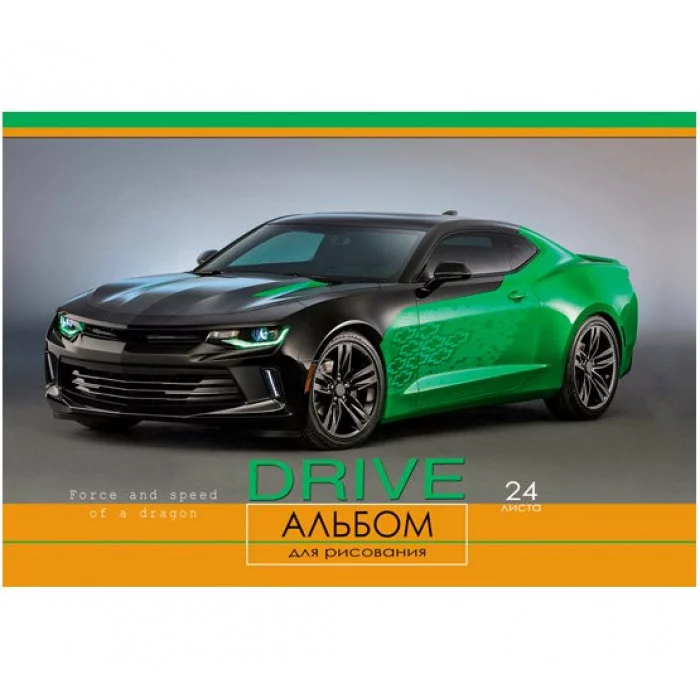 Альбом для рисования А4 24л. ЧЕРНО-ЗЕЛЕНОЕ АВТО (24-1269) на гребне. мелов. обл..офс