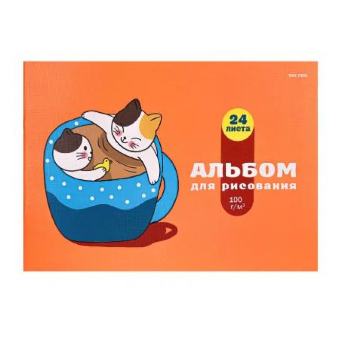 Альбом для рисования А4 24л. КОШКА И КОТЁНОК (24-3769) скрепка, 6+0, лен 24-3769
