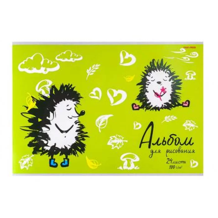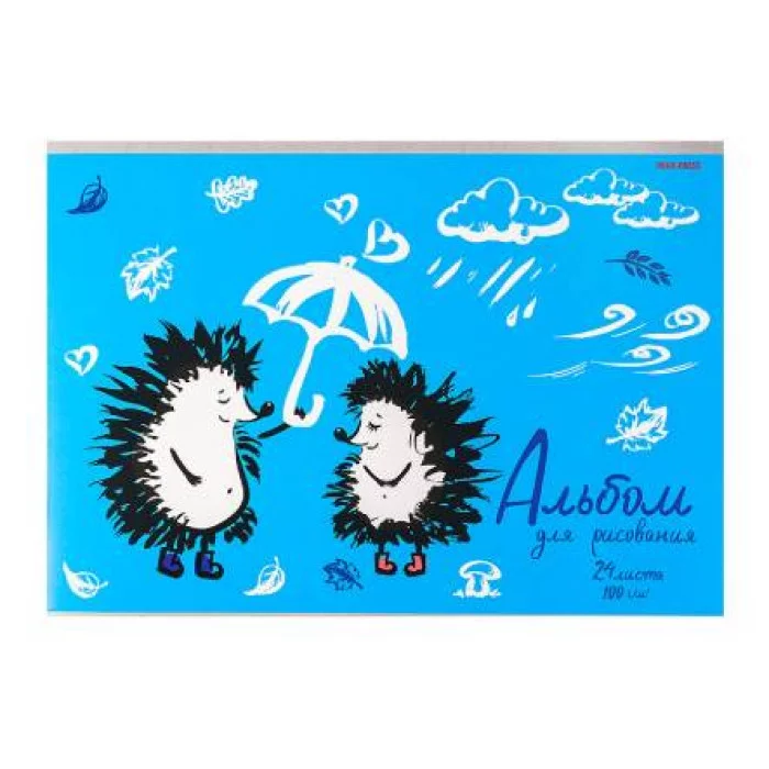 Альбом для рисования А4 24л. ЗАБАВНЫЕ ЁЖИКИ МИКС (24-9646) скрепка, мелов. обл. офсет 24-9646
