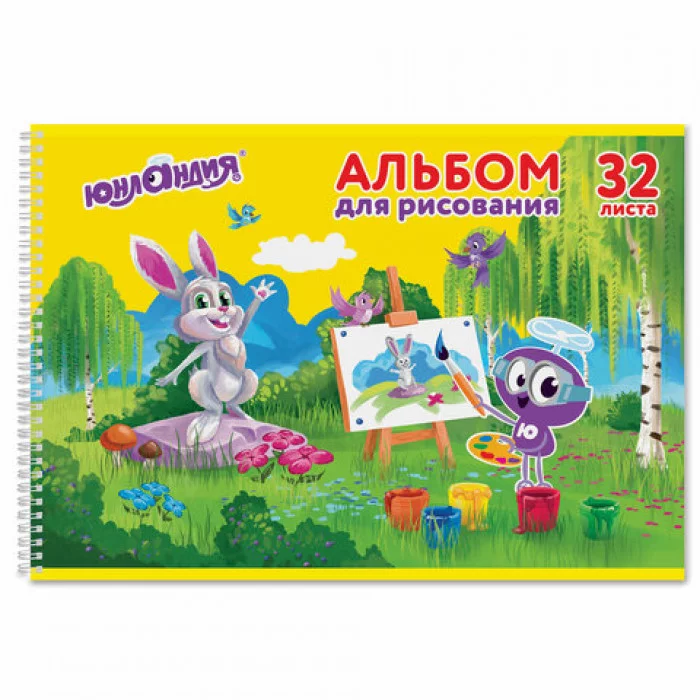 Альбом для рисования А4 32 листа гребень обложка картон ЮНЛАНДИЯ 205х290 мм Уроки (1 вид) 105078