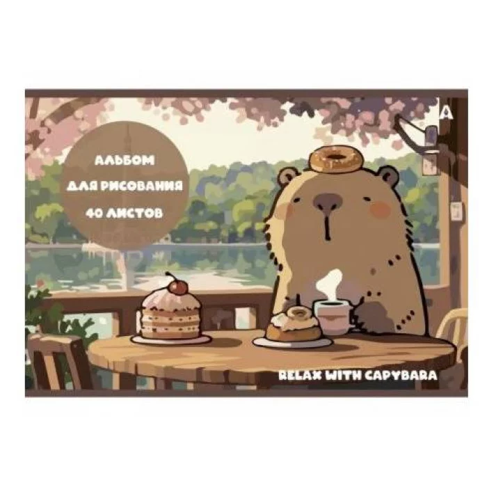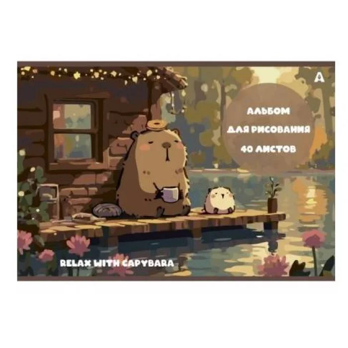 Альбом для рисования А4 40л., Alingar, на скрепке, мелованный картон (стандарт), 100 г/м2, "Капибара"