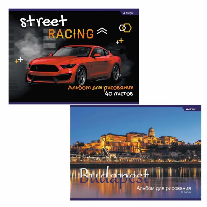 Альбом для рисования А4 40л., Alingar, на скрепке, мелованный картон (стандарт), 100 г/м2, "MIX. Авто. Будапешт" AL10770