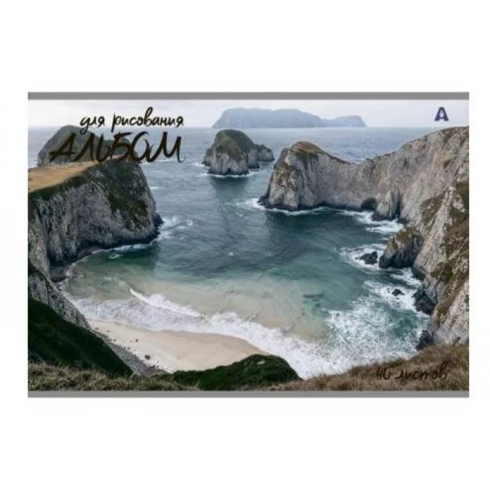 Альбом для рисования А4 40л., Alingar, на скрепке, мелованный картон (стандарт), 100 г/м2, "Скалы" AL10553