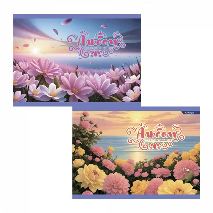 Альбом для рисования А4 40л. Alingar ,на скрепке ,мелованный картон(стандарт), 100 г/м2, "Цветочное поле" AL11431