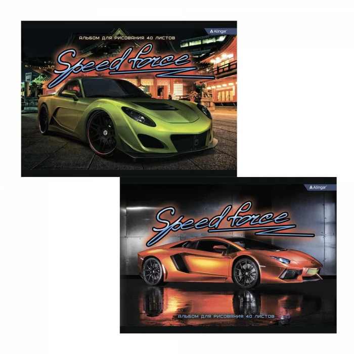 Альбом для рисования А4 40л Alingar на скрепке мелованный картон (стандарт) 210г/м2 офсет 100 г/м2 Speed force AL11428