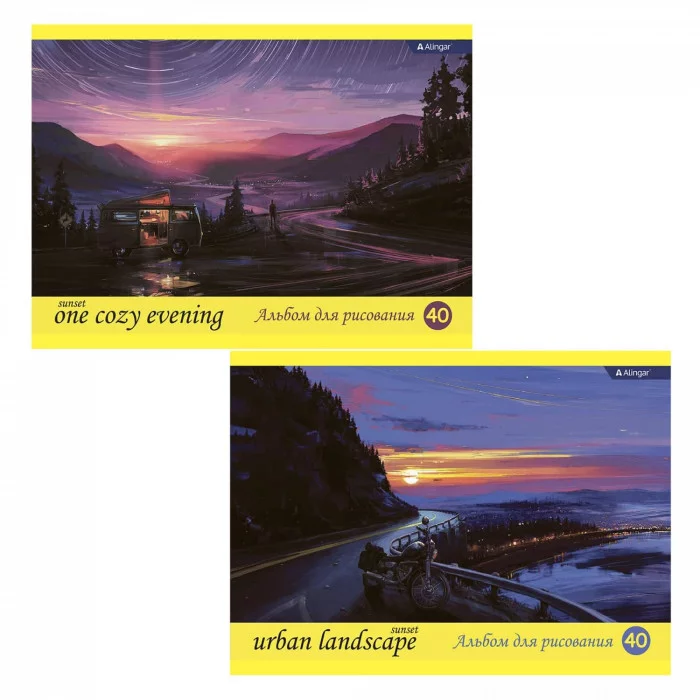 Альбом для рисования А4 40л. Alingar ,на скрепке ,мелованный картон(стандарт), 100 г/м2, "Завораживающий закат" AL11433