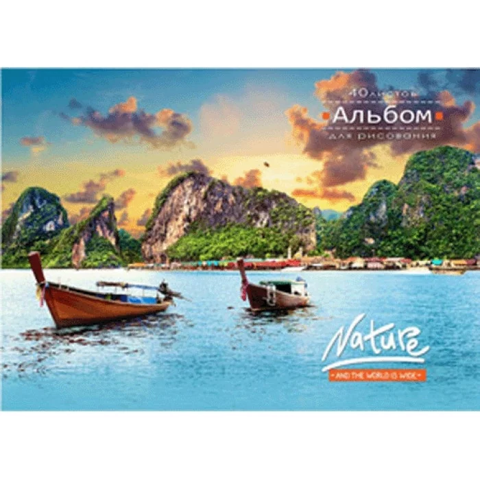 Альбом для рисования А4 40л ЛОДКИ НА ВОДЕ (40-4405) гребень офсет Аль4170