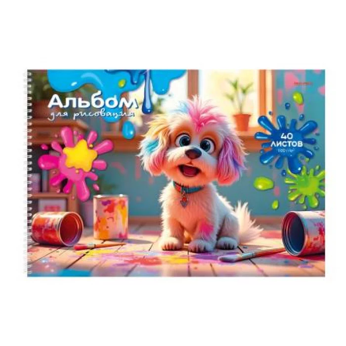 Альбом для рисования А4 40л. СОБАКИ-ХУДОЖНИКИ (40-5915) гребень, офсет 40-5915