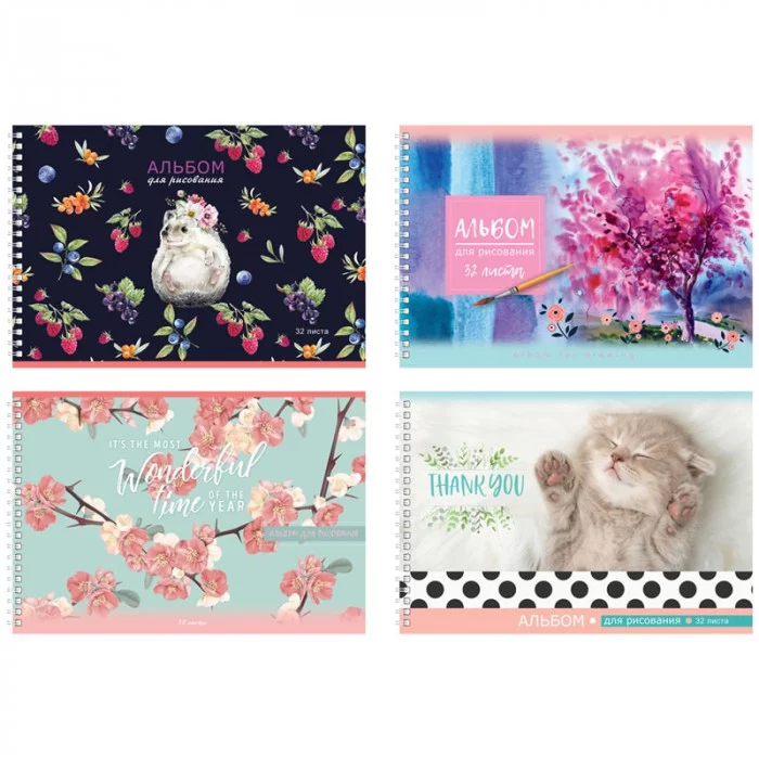 Альбом для рисования А4 гребень 32л MIX - Девочки (ассорти) АР4гр32 8778 Аль3429