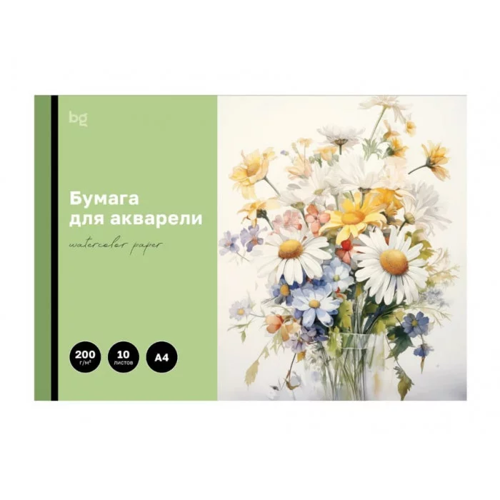 Папка для акварели 10л А4 BG Полевые цветы 200г/м2 368580