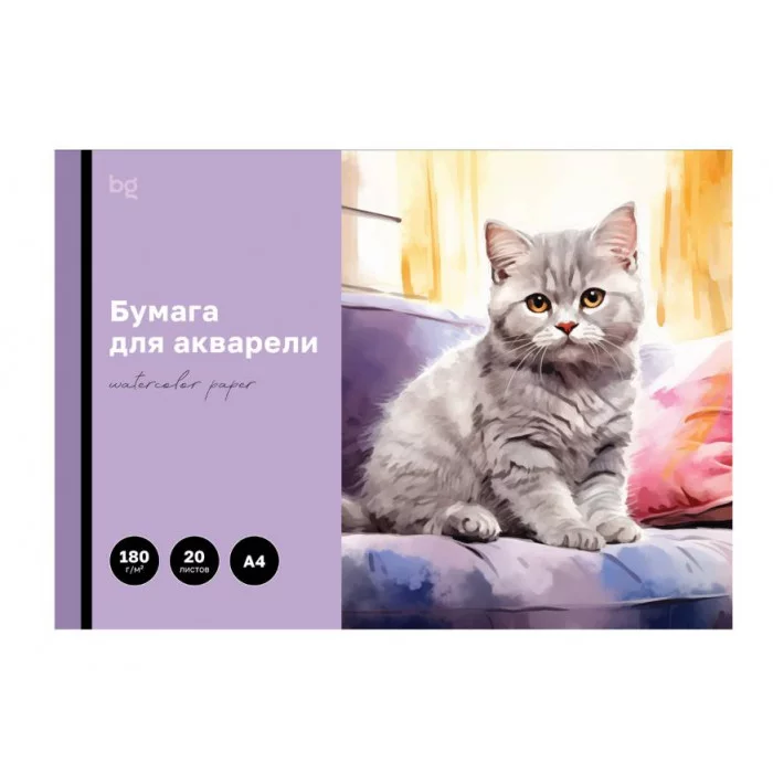 Папка для акварели, 20л., А4 BG "Котенок", 180г/м2 368574