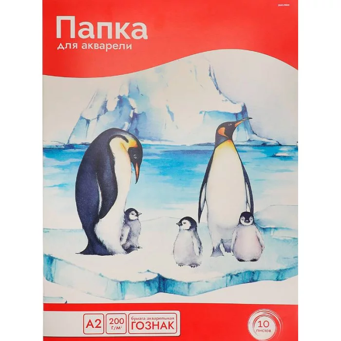 Папка ДЛЯ АКВАРЕЛИ А2 СЕМЕЙСТВО ПИНГВИНОВ (10-5807) цветная обл 10л 200г/м2 ГОЗНАК 10-5807