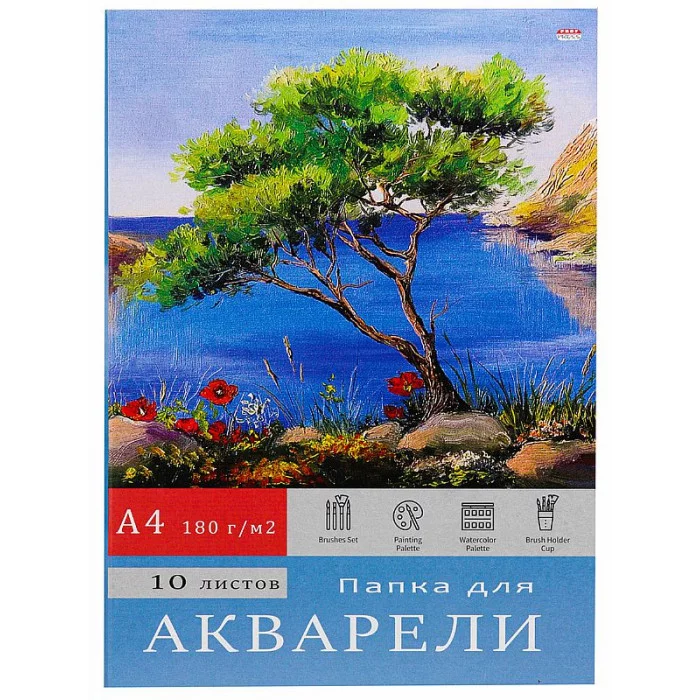 Папка для акварели от компании "Проф-Пресс" содержит 10 отдельных листов бумаги для рисования водорастворимыми красками всех видов. Отличное качество бумаги позволяет краске ложиться равномерно. Папка с яркой обложкой, внутренний блок плотностью 180г/м2, формат А4.