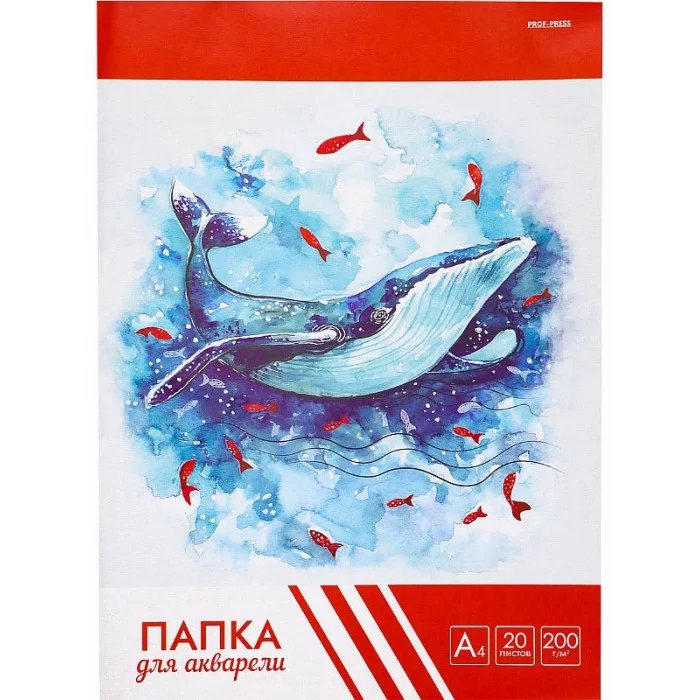 Папка ДЛЯ АКВАРЕЛИ А4 ОГРОМНЫЙ КИТ (Ч20-4587) цветная обл 20л 200г/м2 Ч20-4587