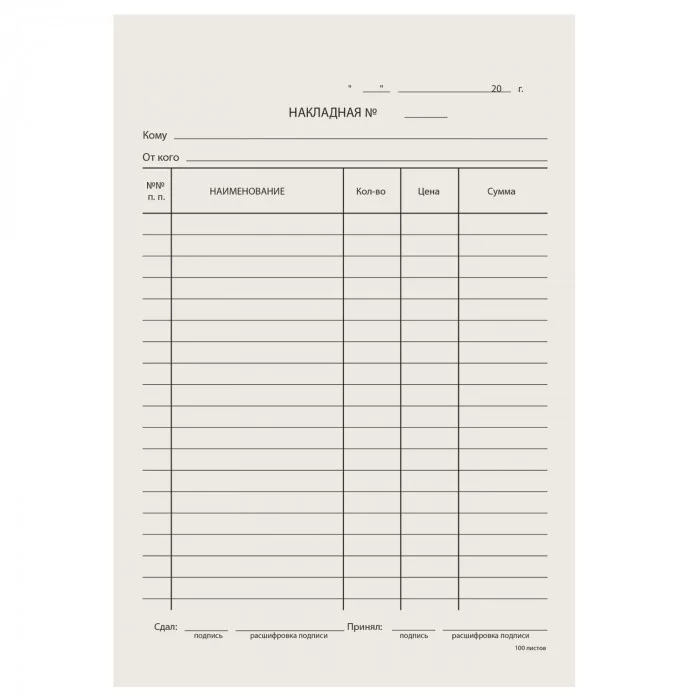 Бланк бухгалтерский Накладная А5 (134х192 мм) СКЛЕЙКА 100 шт. 130011