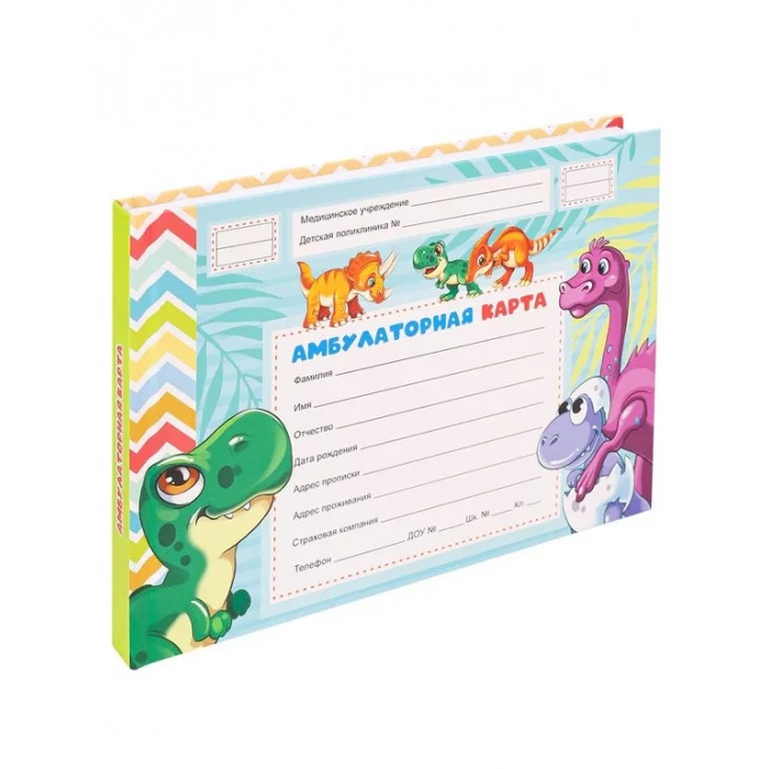 Амбулаторная карта А5, 144л. ДИНОЗАВРИКИ-1 (КМ-0463) 7БЦ, обл.-картон, блок-офсет., 218х153 КМ-0463