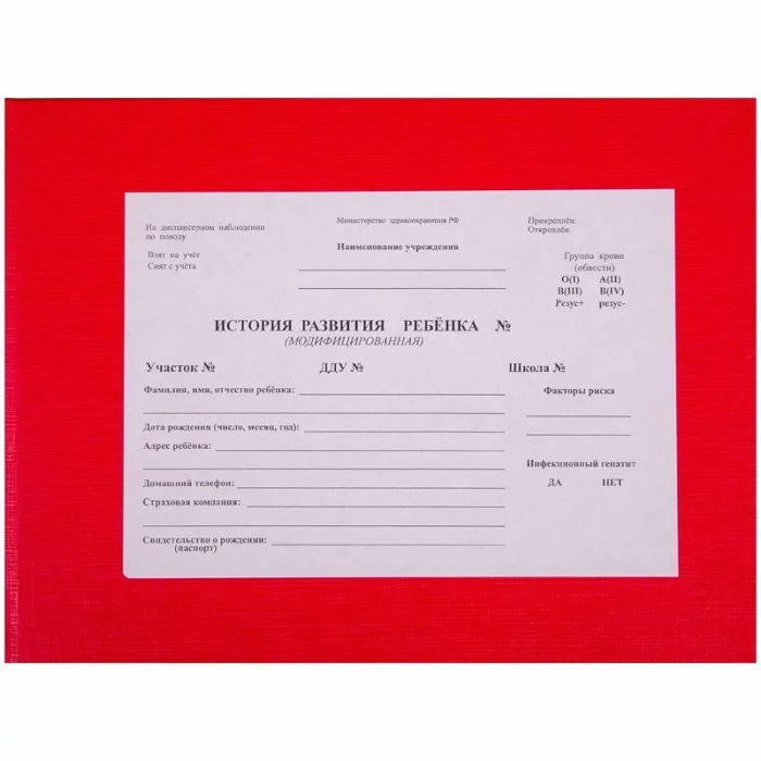 Медицинская карта история развития ребенка OfficeSpace, А5 205*150мм (ф.112), красная, тв. обл. БВ, 196л 266721