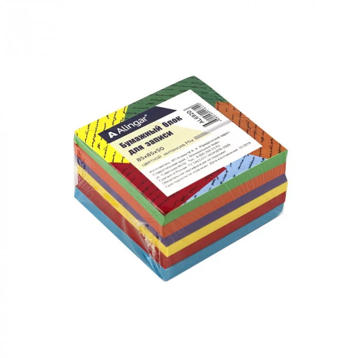 Блок бумажный для записи Alingar, 8, 5*8, 5*5см. 500л. цветной Mix интенсив непроклееный AL6920