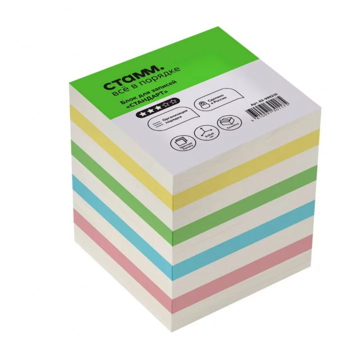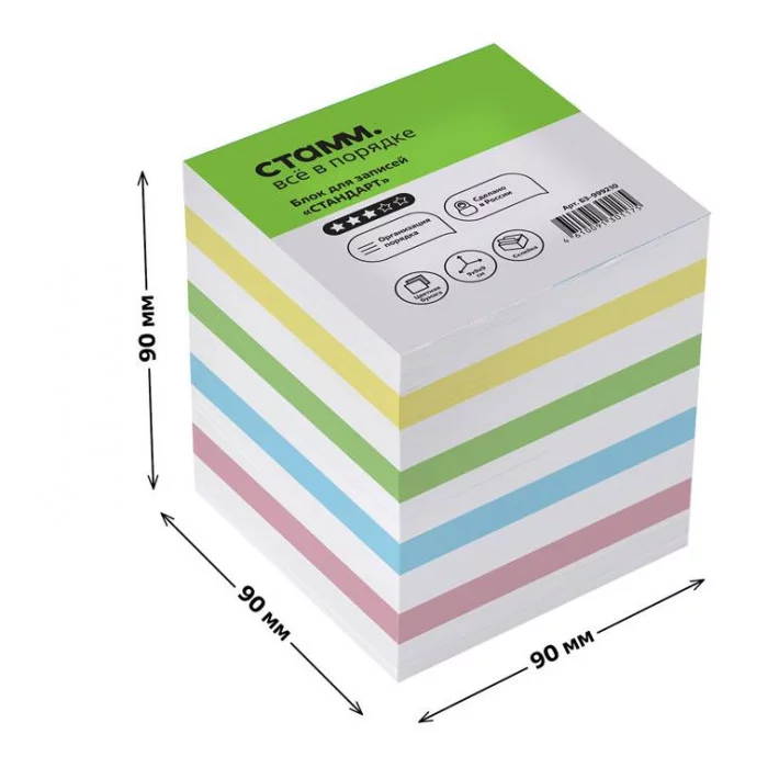 Блок для записей на склейке СТАММ "Стандарт", 9*9*9см, ассорти 331326