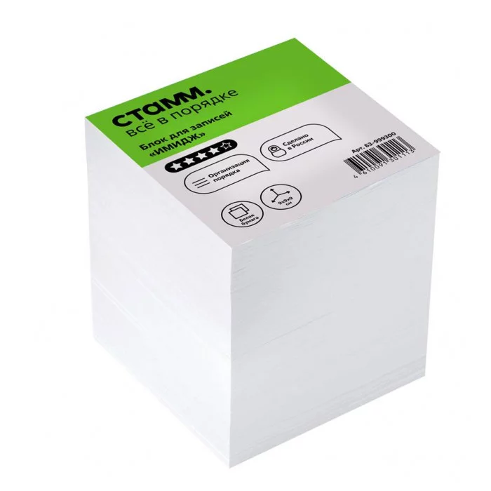 Блок для записей СТАММ "Имидж", 9*9*9см, белый 111350