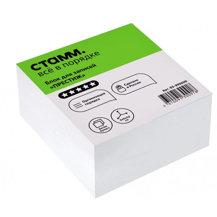 Блок для записей СТАММ Престиж , 9*9*4,5см, белый 331310