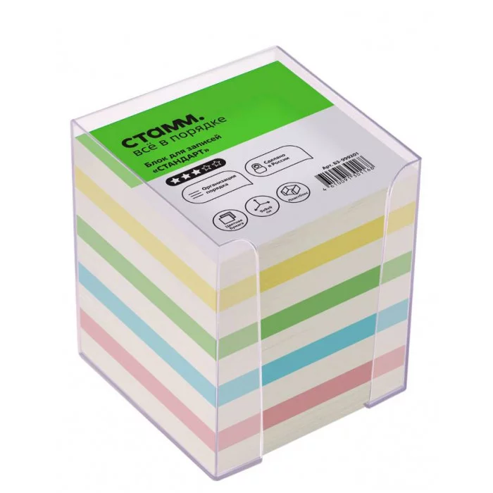 Блок для записей СТАММ "Стандарт", 9*9*9см, пластиковый бокс, ассорти 331327