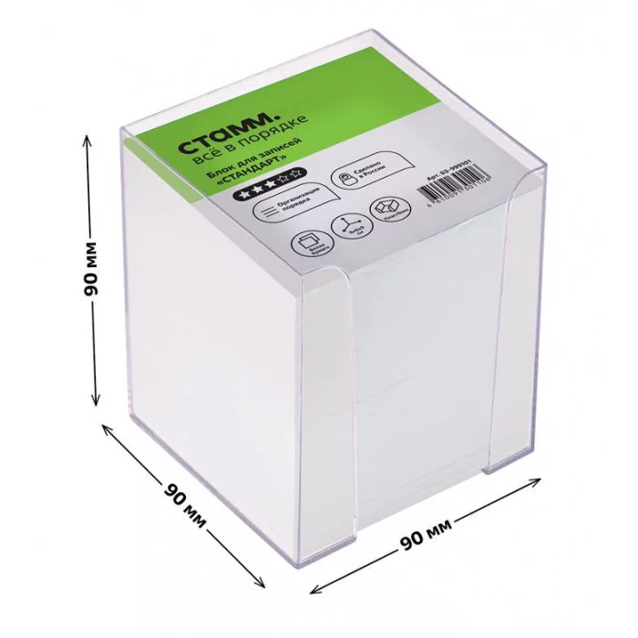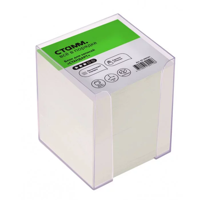 Блок бумаги «СТАММ» Стандарт в прозрачном пластиковом боксе подходит для оперативных записей необходимой информации.