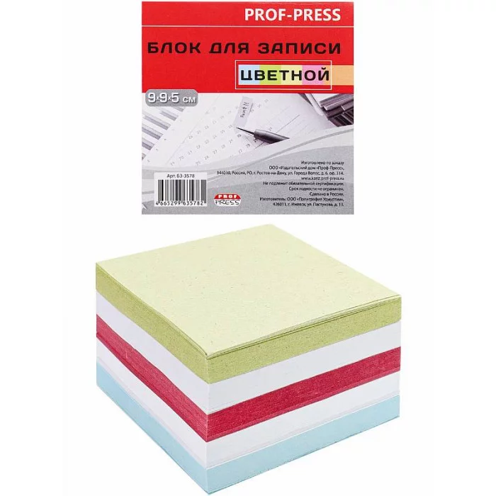 Блок для записи 90х90х50 ЦВЕТНОЙ (БЗ-3578) непроклеенный 65гр. БЗ-3578