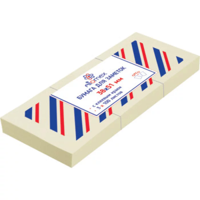 Клейкая бумага для заметок "Attomex" 38x51 мм, офсет 75 г/м², желтая, 3 шт по 100 листов в упаковке