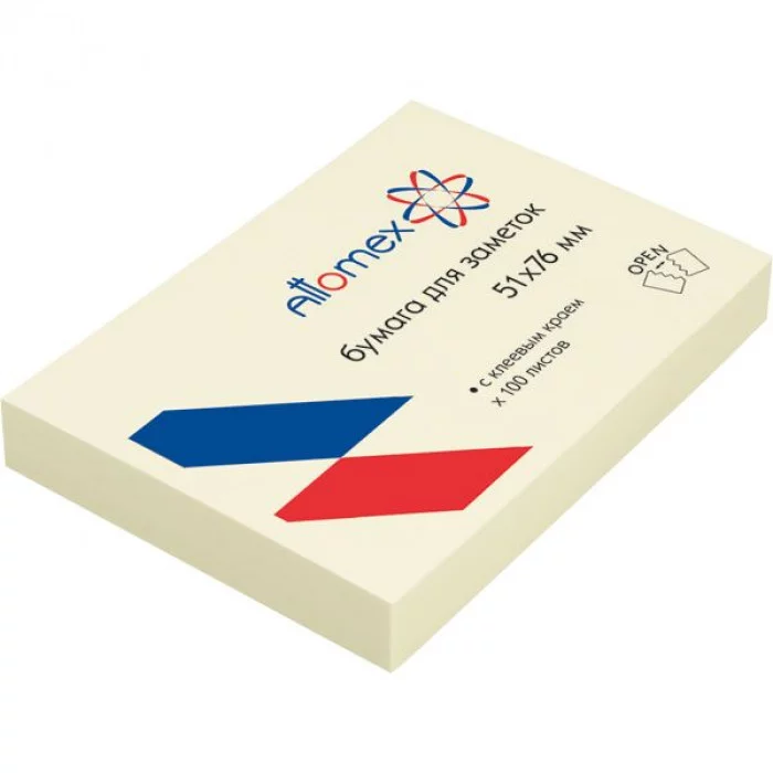 Клейкая бумага для заметок "Attomex" 51x76 мм, 100 листов, офсет 75 г/м?, желтая