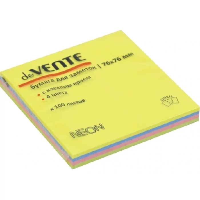Клейкая бумага для заметок "deVENTE" 76x76 мм, 100 листов, офсет 75 г/м?, 4 неоновых цвета