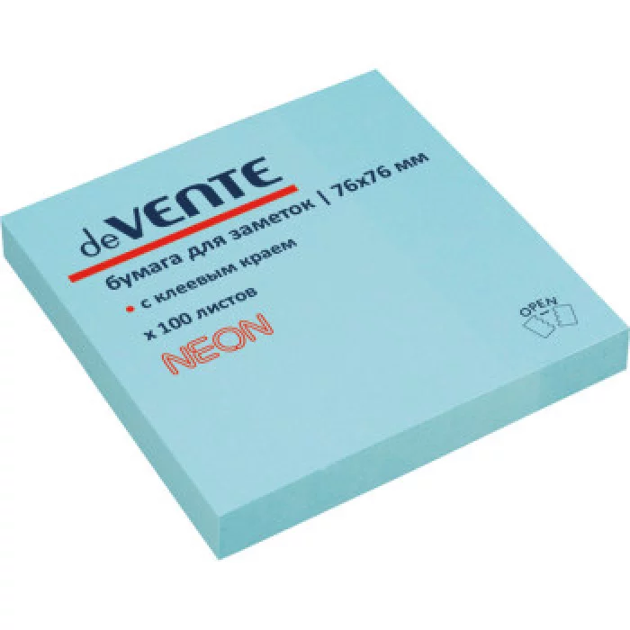 Клейкая бумага для заметок "deVENTE" 76x76 мм, 100 листов, офсет 75 г/м², неоновая голубая