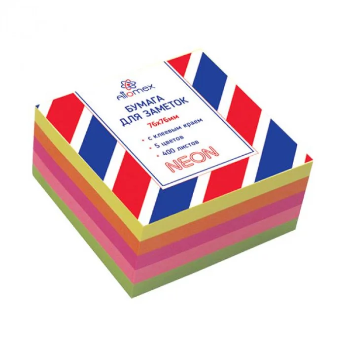 Блок самоклеящийся (стикеры) 76*76 400л 05цв неон ATTOMEX 2010205 581878