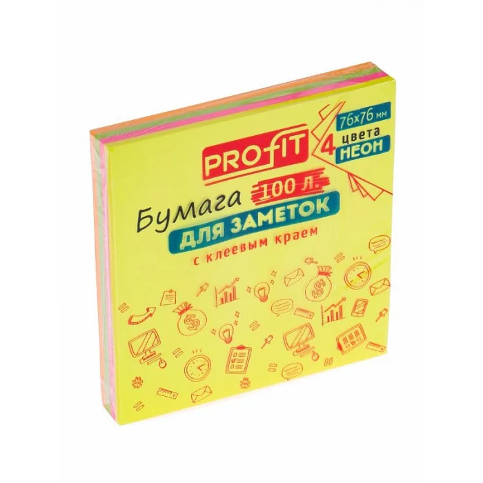 Бумага для заметок с клеевым краем 4 ЦВЕТА ЗБ-5576 76х76 мм, 100л, неон ТМ Profit