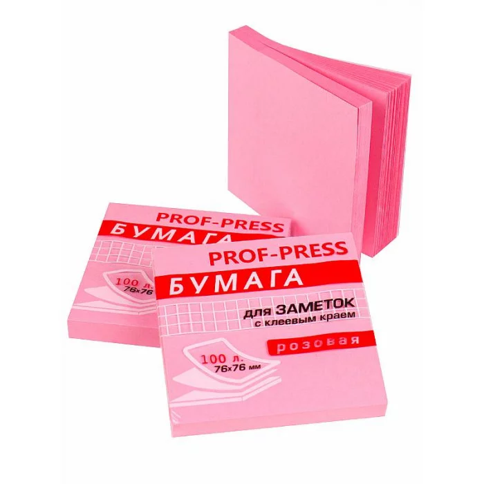 Бумага для заметок с клеевым краем РОЗОВАЯ ЗБ-1555 76х76 мм, 100л